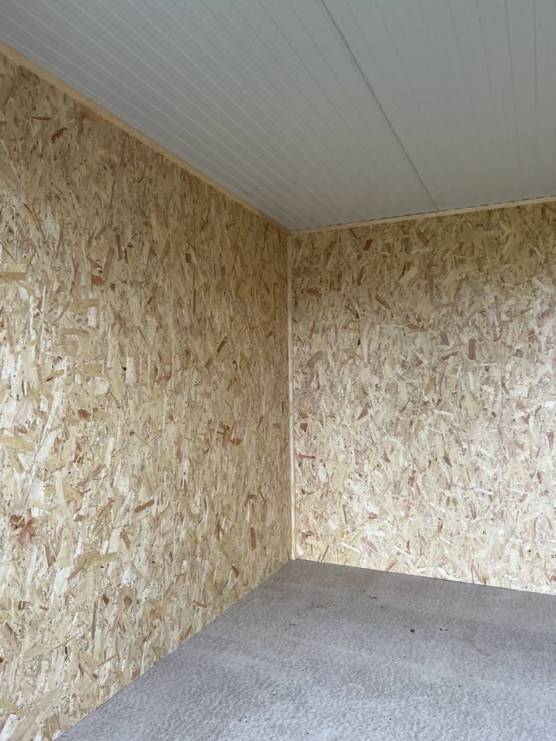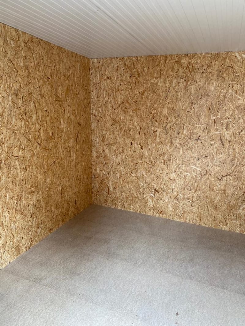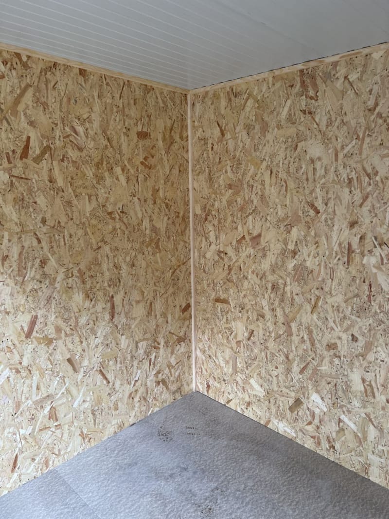 Internally all our garden shed buildings are lined with OSB Timber. OSB (Oriented Strand Board) is a widely used engineered wood panel made from layers of compressed wood strands bonded with resin and wax. The strands are oriented in specific directions, giving the board strength and consistency similar to plywood.