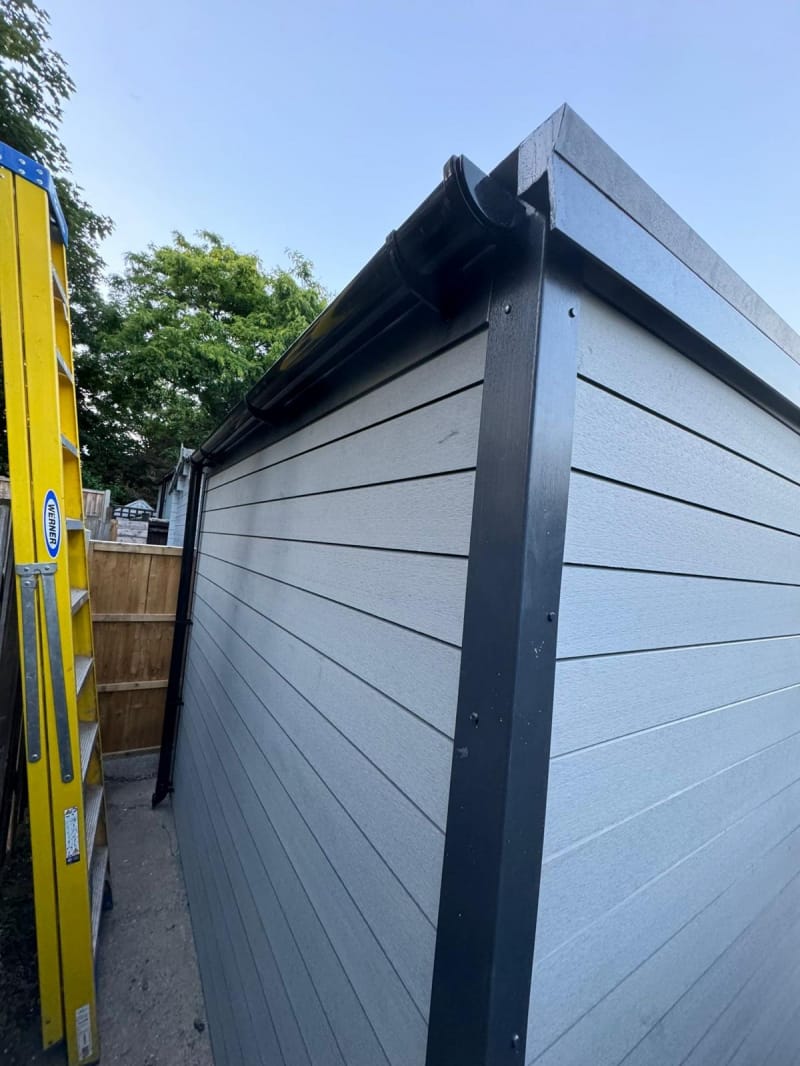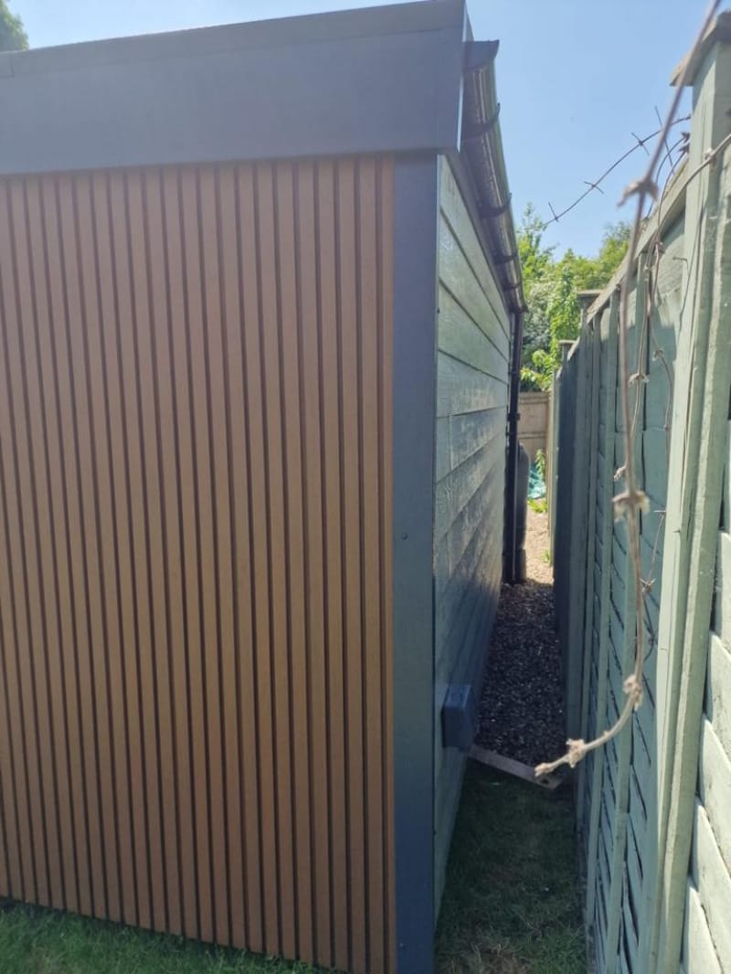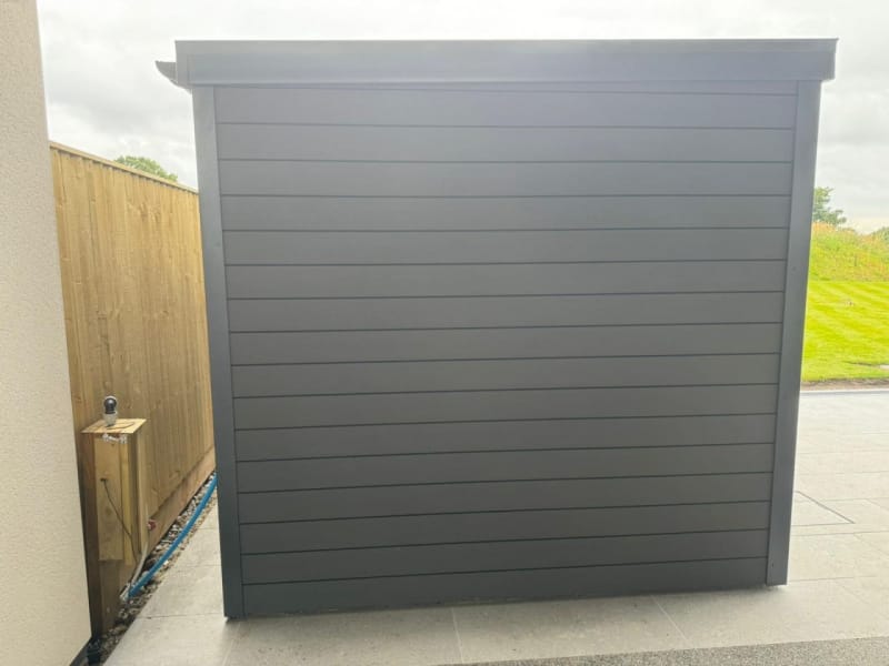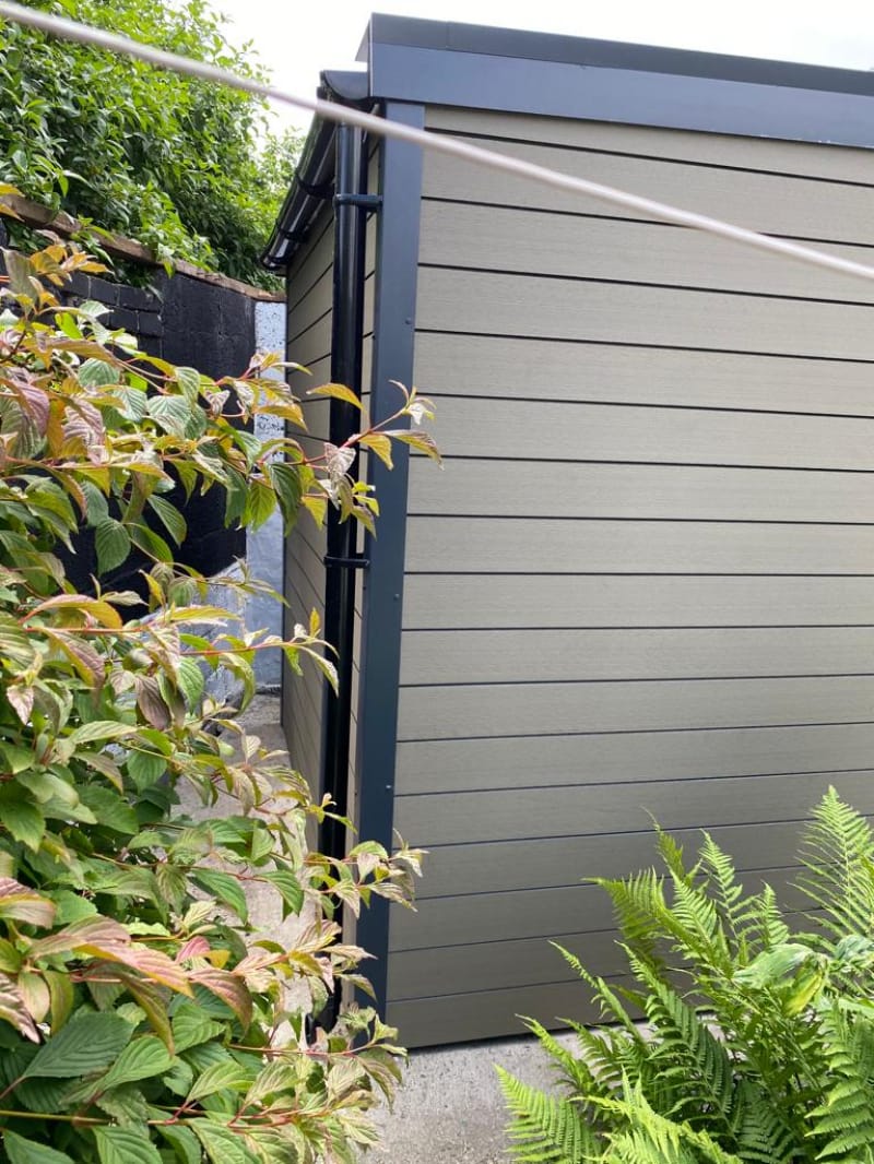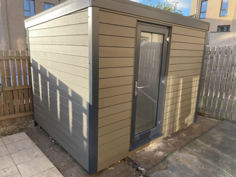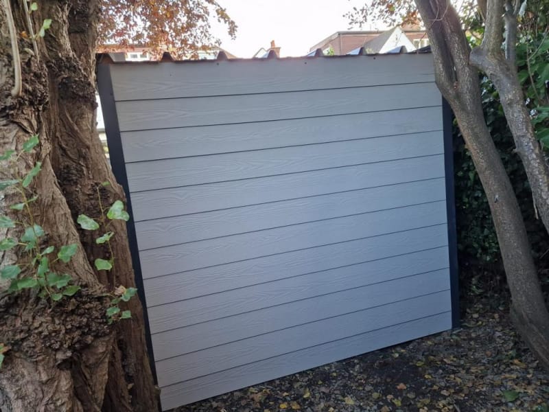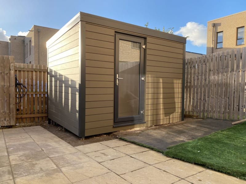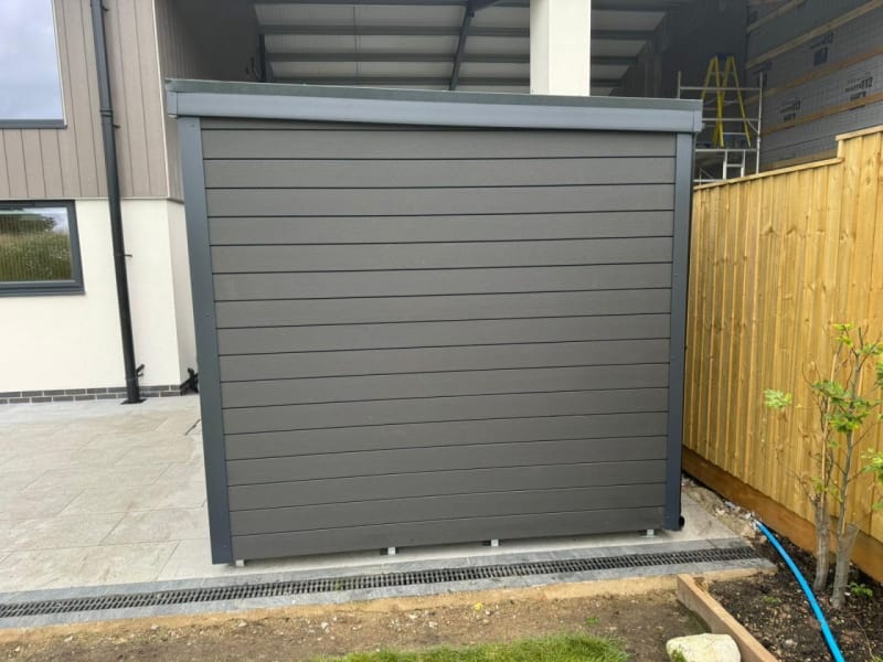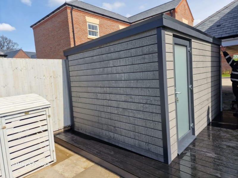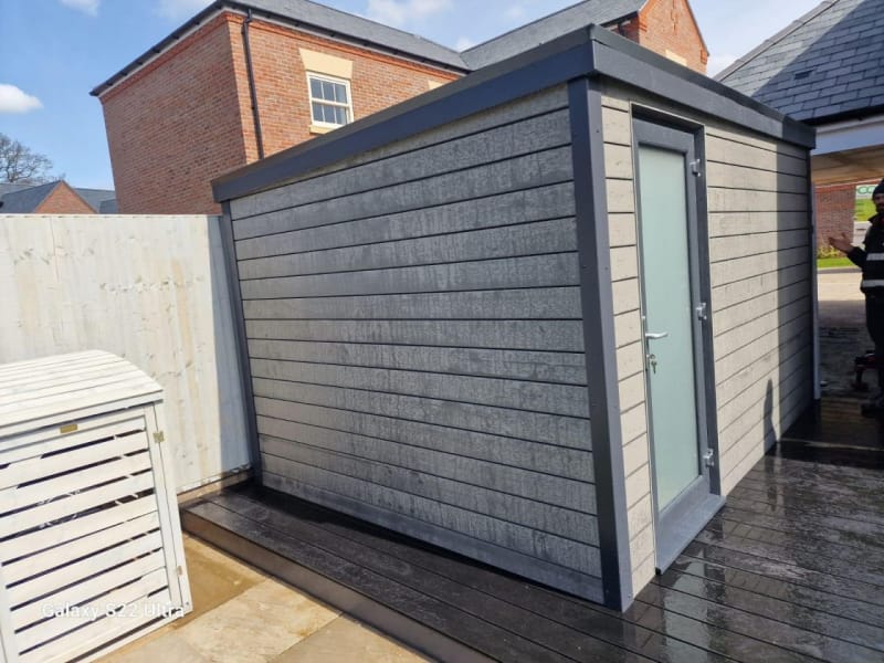A selection of our composite and timber garden sheds fully installed on site.