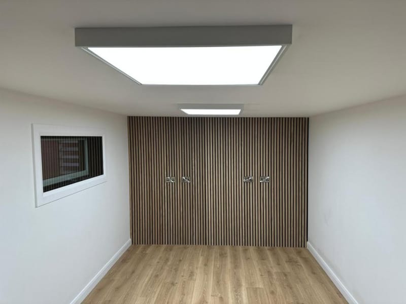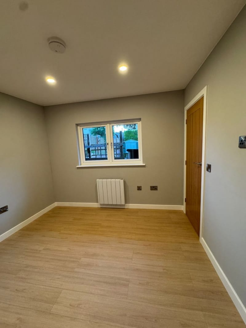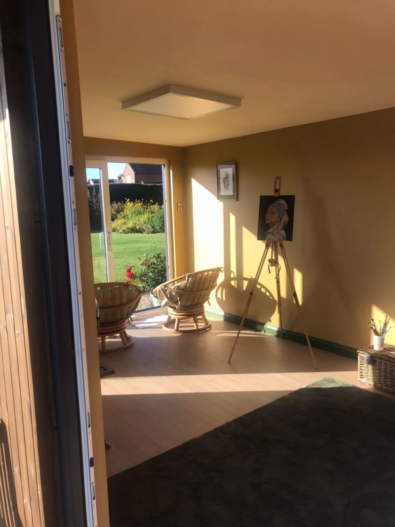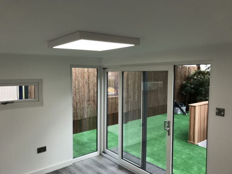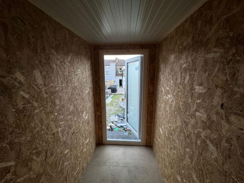 As standard all our garden room buildings are lined with OSB Timber. OSB (Oriented Strand Board) is a widely used engineered wood panel made from layers of compressed wood strands bonded with resin and wax. The strands are oriented in specific directions, giving the board strength and consistency similar to plywood. As an option you can have the inside of your new garden room professionally plasterboarded and plastered. This option will give you an internal finish similar to the inside of a new house.