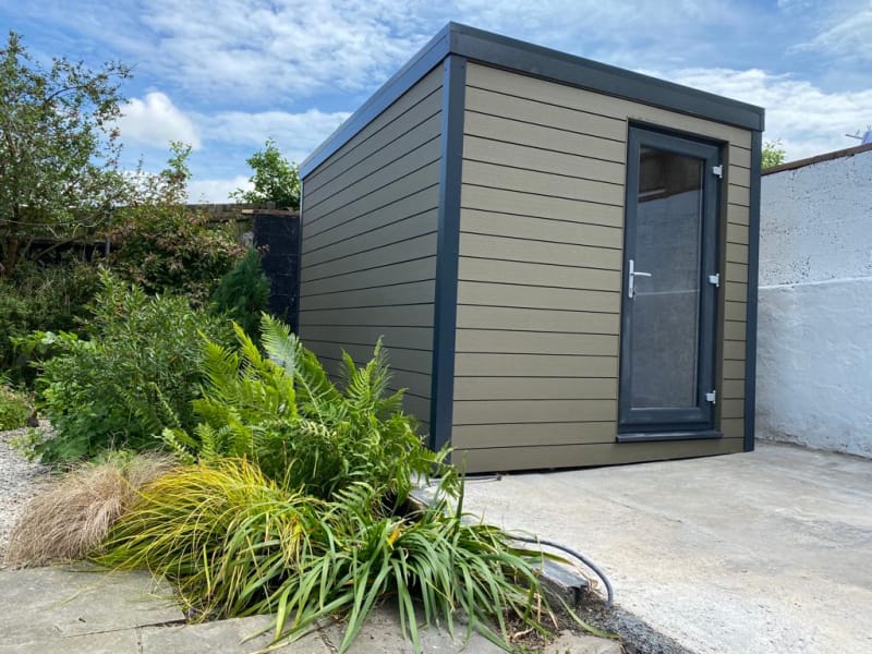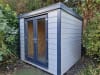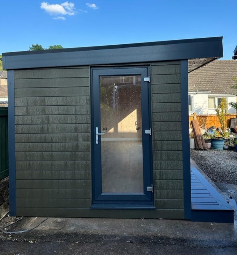 Our fibre cement garden sheds and fibre cement garden rooms are available in a range of different colours including: Light Grey, Slate Grey (Dark Grey), Granite (Back), Sage Green, Blue, Cream, White and Unpainted.
