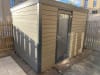 Our composite and timber garden saunas are available in either smooth or woodgrain composite in a range of different colours including: Light Grey, Charcoal (Dark Grey\Black), Teak (Light Brown), Coffee (Dark Brown), Redwood, Olive Green and Ivory.